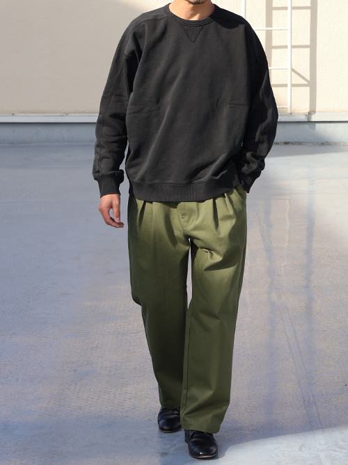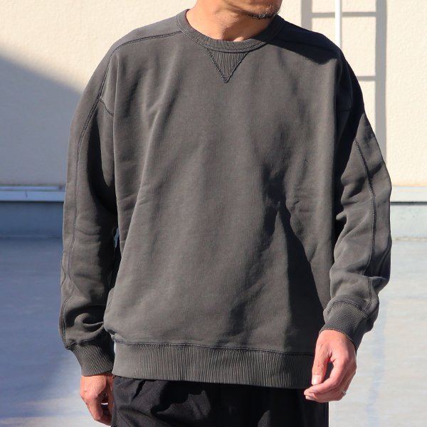 ヘビー裏起毛ピグメントヘビー裏起毛(14オンス)ミリタリースリーブ ガゼットクルーネック