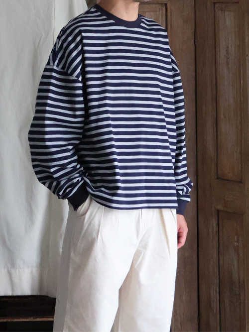 VORTEX 8オンス(MVS天竺)ボーダークルーネック クロップド 長袖 Tシャツ
