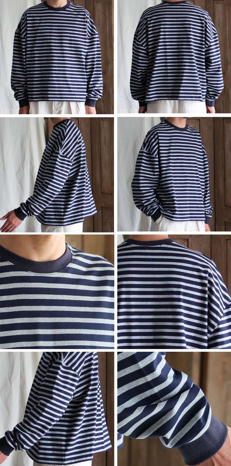 VORTEX 8オンス(MVS天竺)ボーダークルーネッククロップド 長袖 Tシャツ【MADE IN JAPAN】『日本製』/ Upscape Audience [AUD6695]