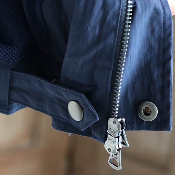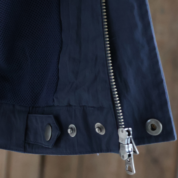 アメリカ海軍(U.S.NAVY)によって開発された"CWUl-36/Pフライトジャケット(Cold Weather Unit)"とアメリカ陸軍航空隊に採用されたフライングジャケット「A-2ジャケット(JACKET,FLYING SUMMER,TYPE A-2)」がイメージソース。大きめなカーゴポケットが特徴的なCWUジャケットに前立て付きのフロントジッパーを用いるA-2ジャケットのデザインをプラスしたアイテムです。
