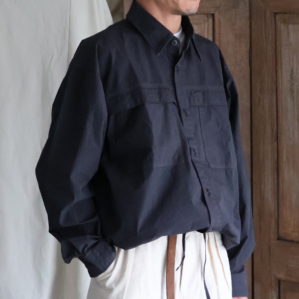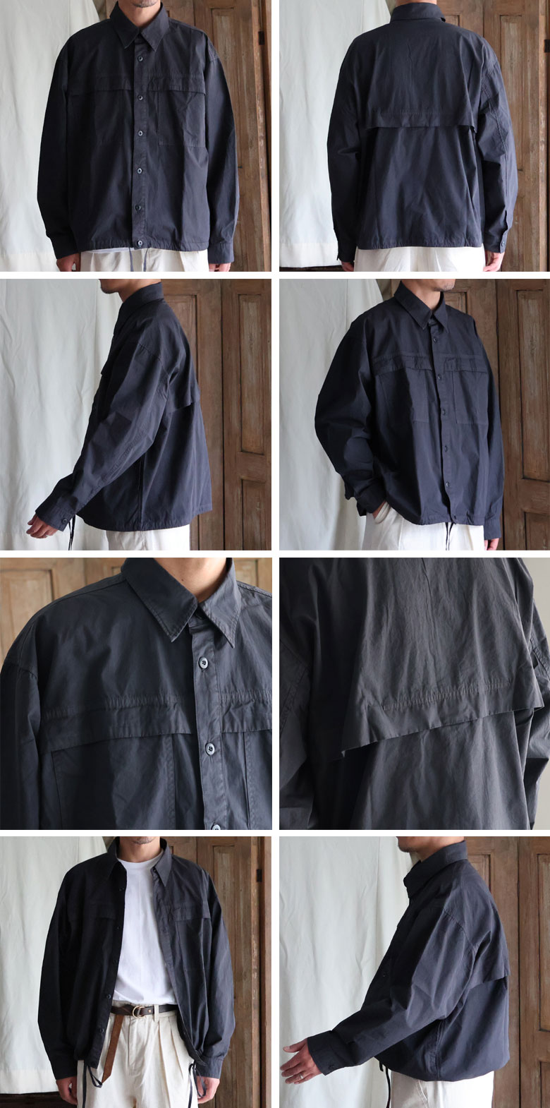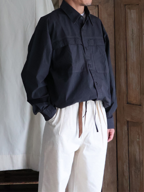 スリーピングシャツをベースに、ユーティリティーなポケットをアクセントにしたデザインです。
