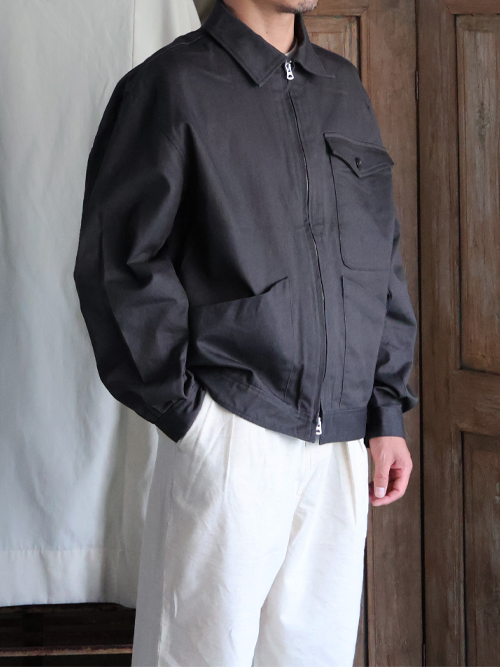裾に入ったタックで、全体的に丸みのある立体的なシルエットを生み出しているドリズラージャケット。