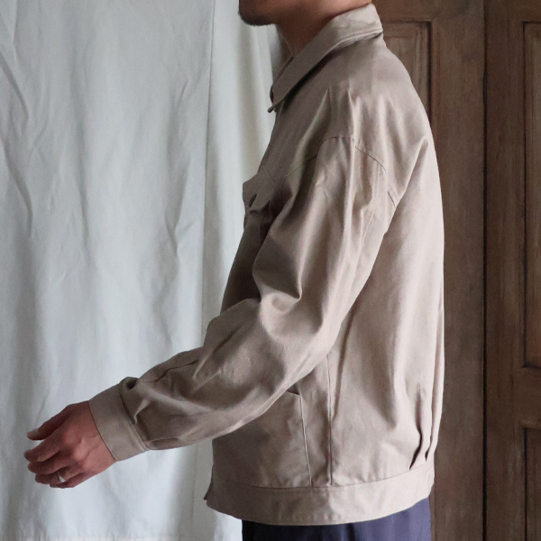自然な洗い感を生地の段階で表現した、ヴィンテージ感のある素材が特徴です。