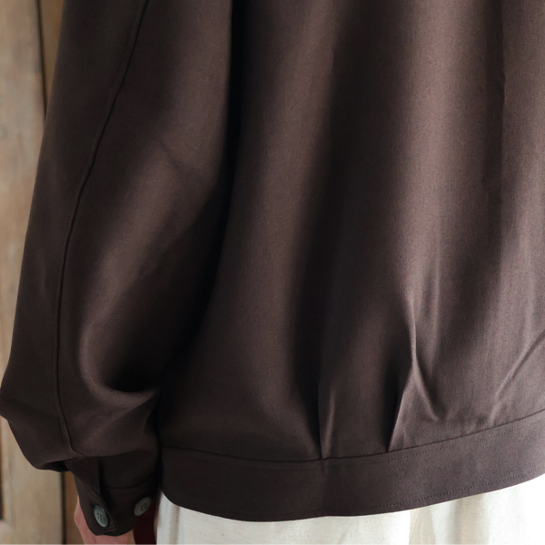 前身頃と後ろ身頃の両方にタックを入れ、バルーンシルエットになっています。