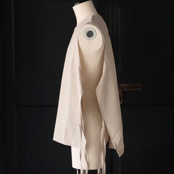 前面裏には大きめな二つのパッチポケットがつき、一見シンプルながら個性的な仕様が詰まった一着です。