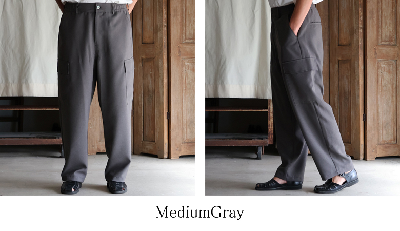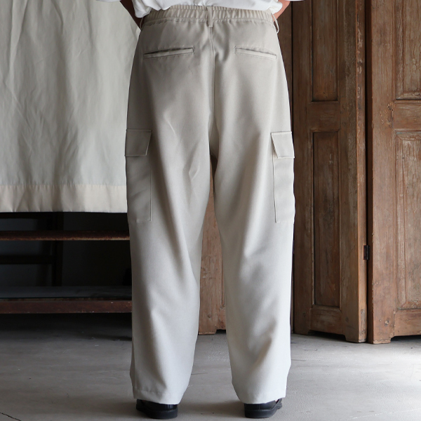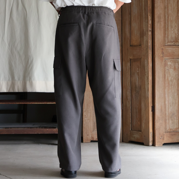ドライタッチでイージーケアなリネンライク素材のワイドストレートのイージーカーゴパンツです。