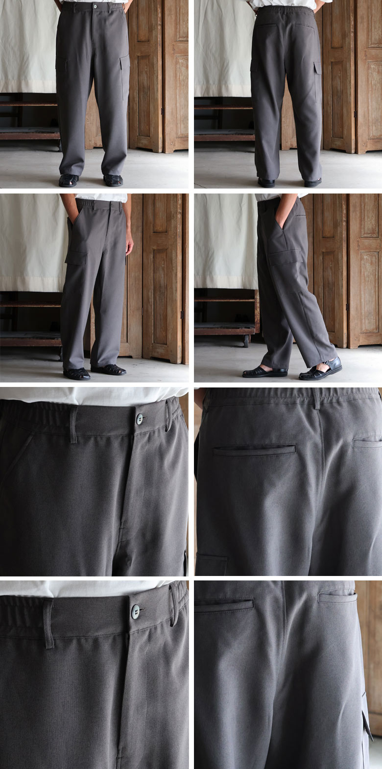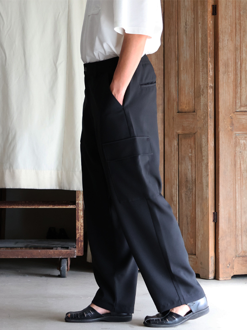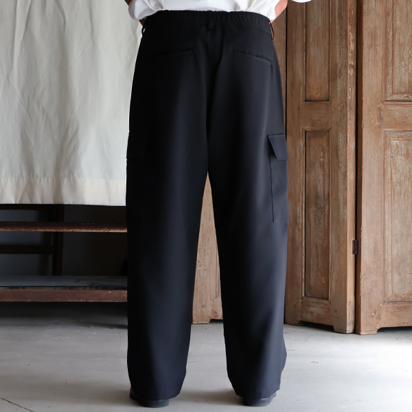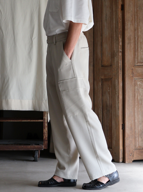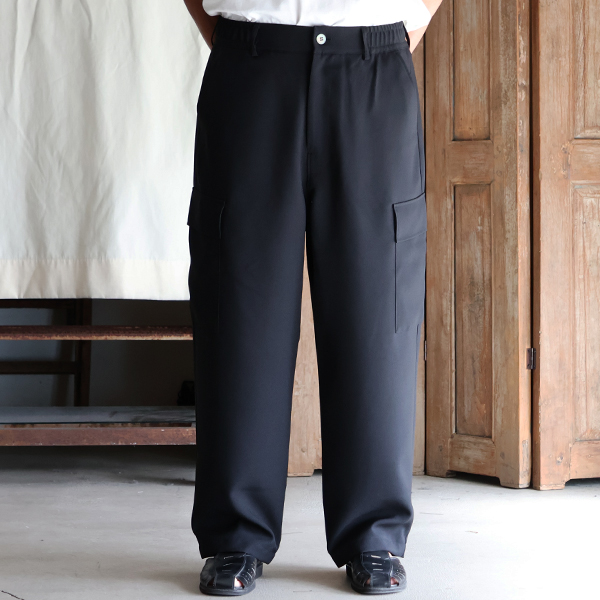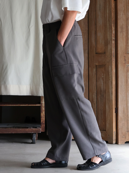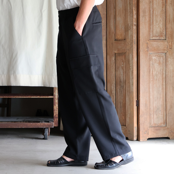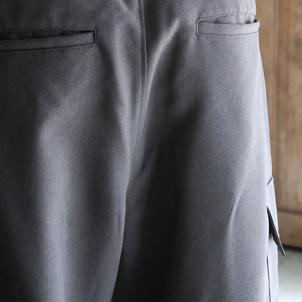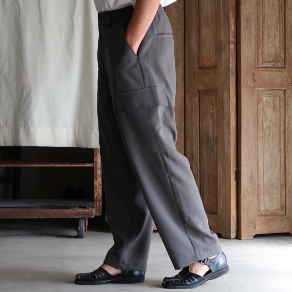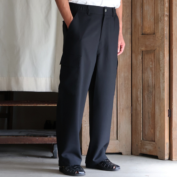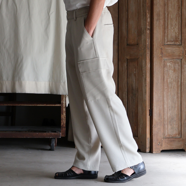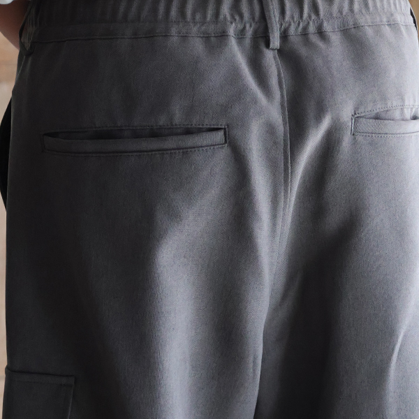 スラックスのようなキレイな仕様に、両サイドにカーゴポケットを施しており、カジュアルにも、キレイ目なスタイルにも合う優れモノです。