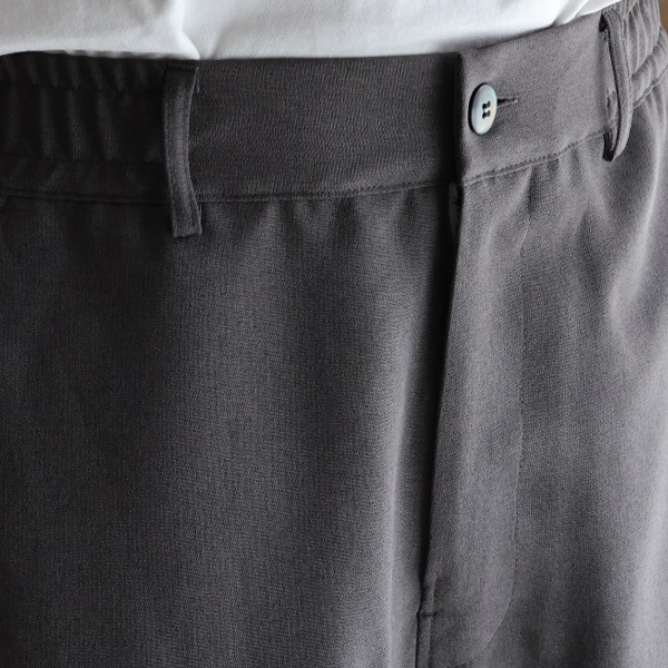 ウエスト箇所にはゴムを縫い込みドローコードを配したイージーパンツ仕様。