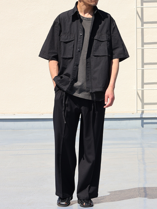 ピグメント 馬布 (ホースクロス) ドローコード バルーン ハーフスリーブ ワークシャツ / Audience [AUD7386]