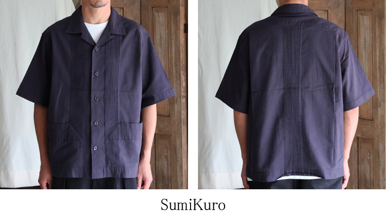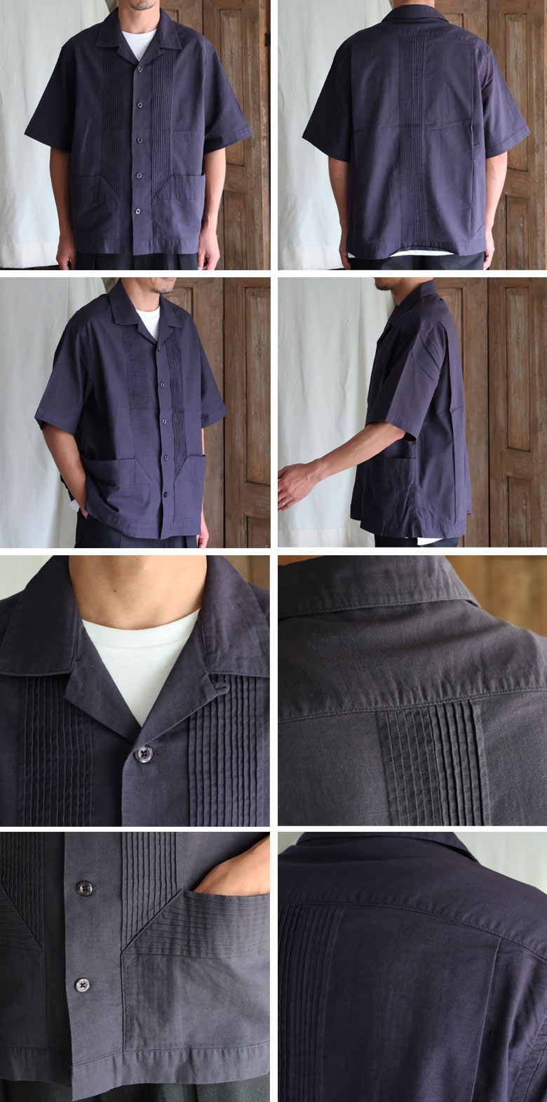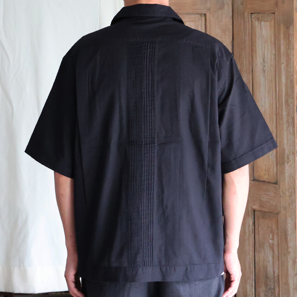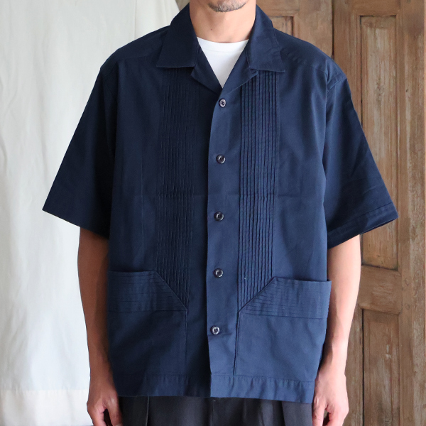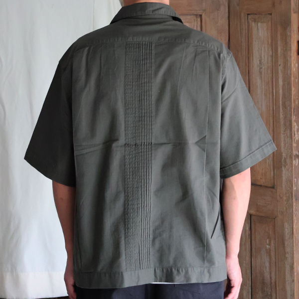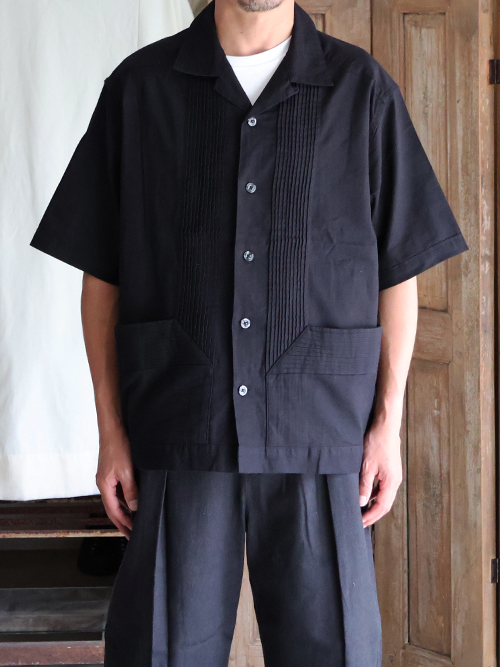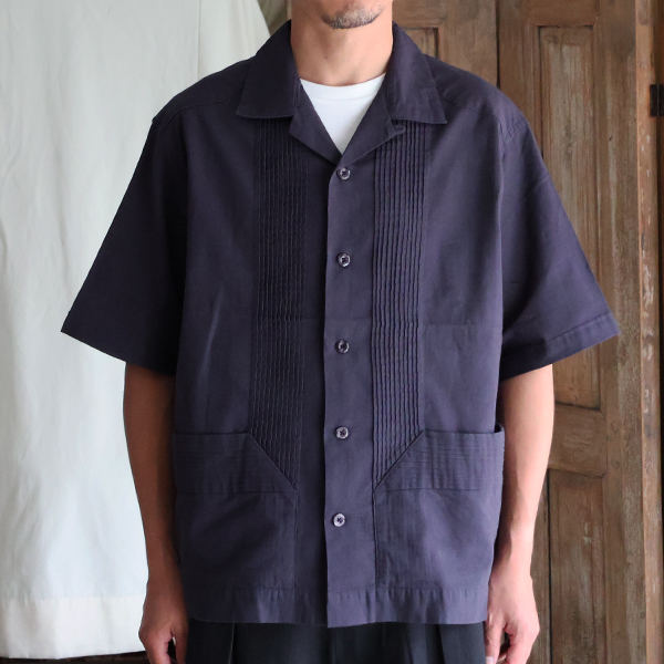 仕様としては、フロントとバッグにピンタックを施したクラシカルな仕上がりのオープンカラーシャツです。