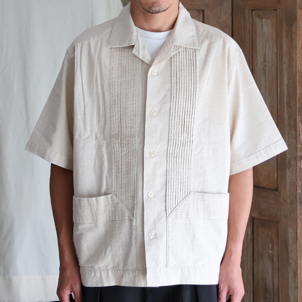 綿麻キャンバス ハーフスリーブ オープンカラー キューバシャツ / Audience [AUD6680]