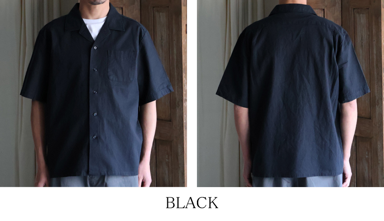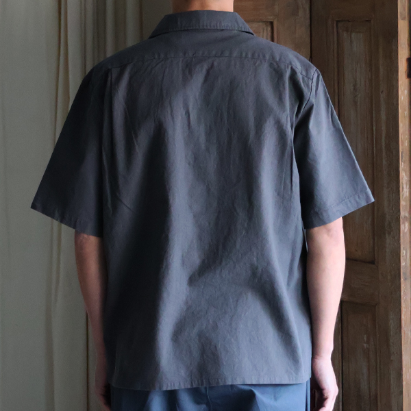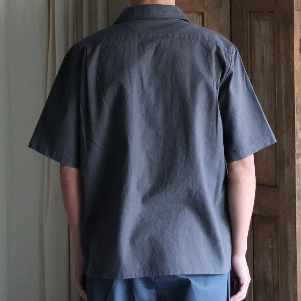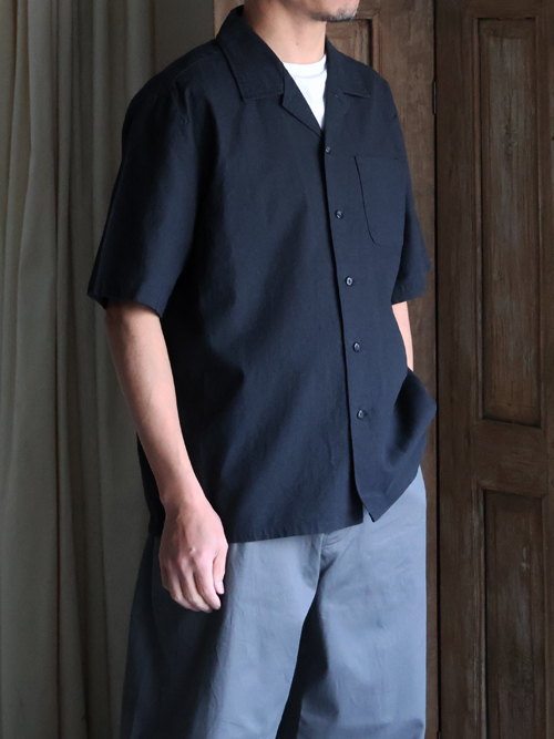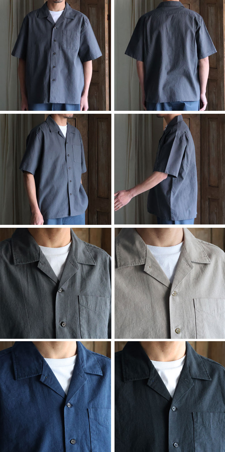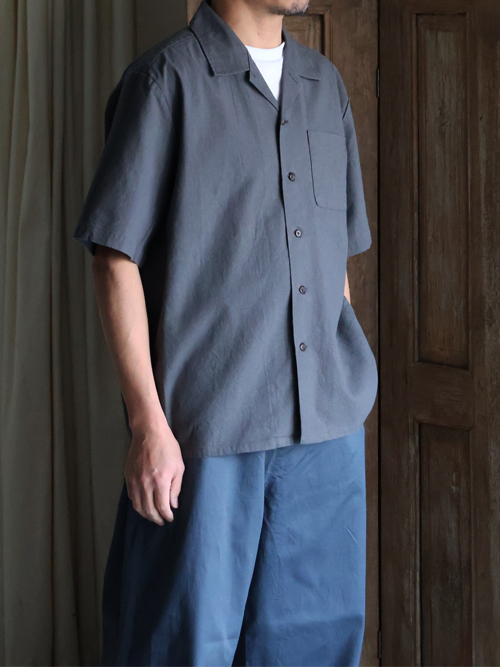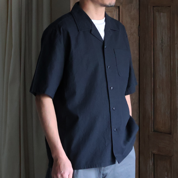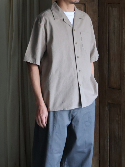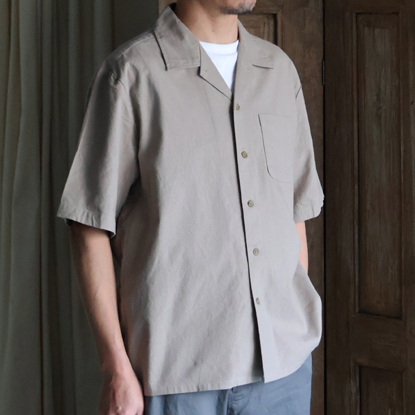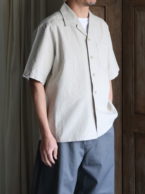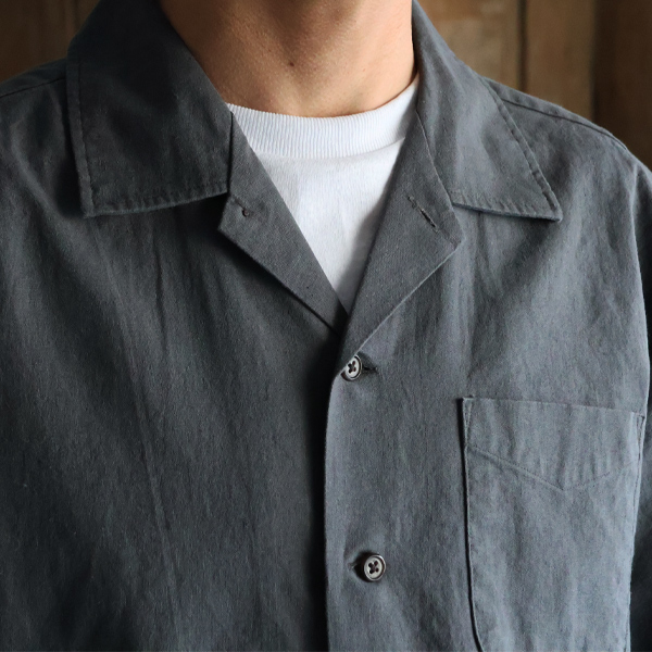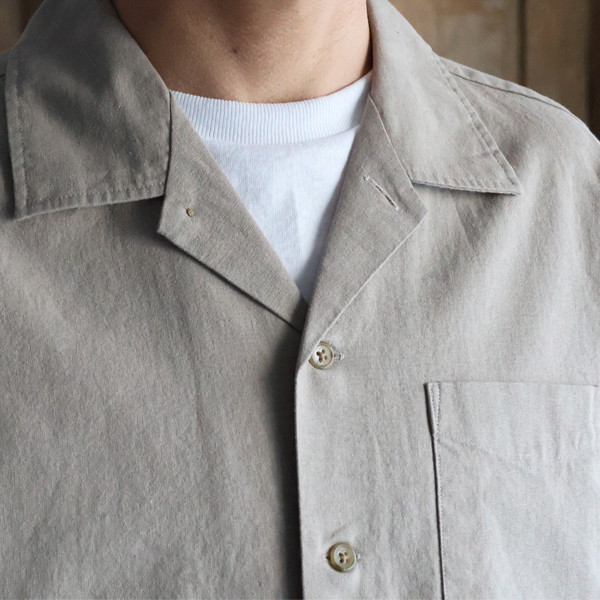 ドライタッチでとても柔らかな風合いのある綿麻キャンバスを使用したオープンカラーシャツです。