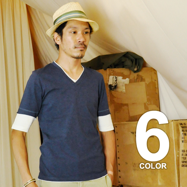 5分袖フェイクレイヤードVネックカットソー / Audience [AUD1218]