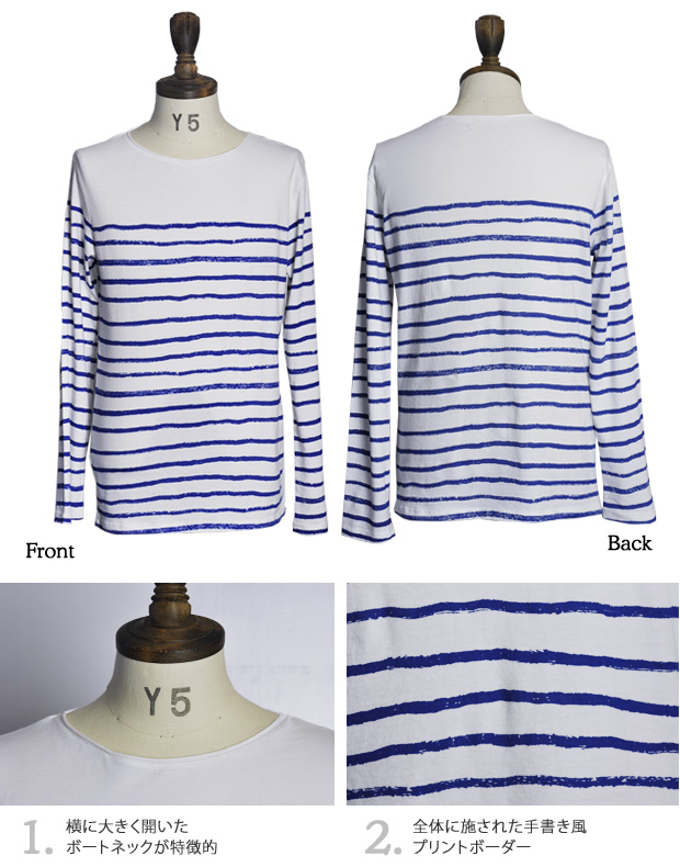 手書きボーダーボートネック長袖カットソー / Audience [AUD1288]