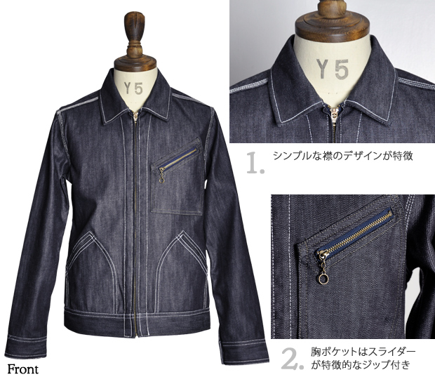 生デニムを使用したジャケット。