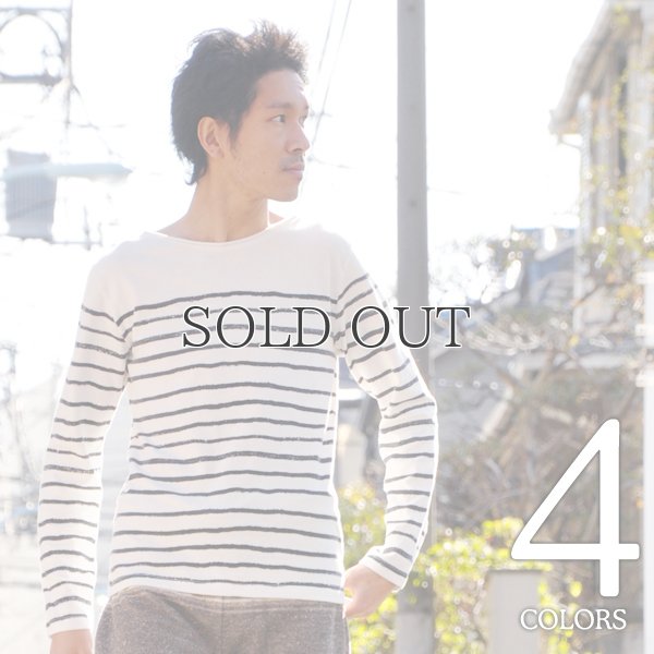 ヘンプコットン手書きボーダーボートネック長袖カットソー / Audience [AUD1302]