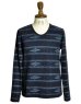 ヘンプコットンオルテガボーダーVネック長袖カットソー / Audience [AUD1306]