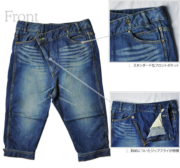 ダイアゴナル5ポケットヴィンテージウォッシュ加工クロップドデニムパンツ / Audience [AUD3153]