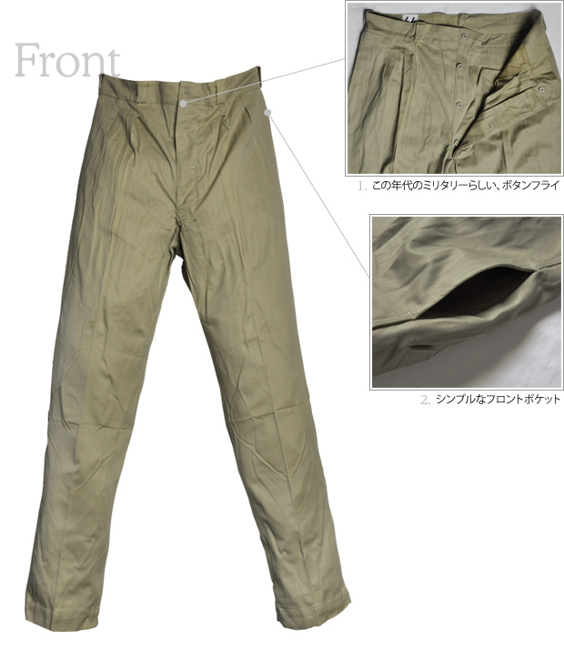 フランス陸軍、60年代モデルのチノパンが入荷しました。