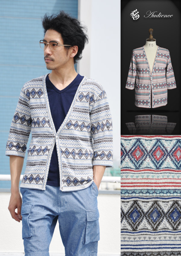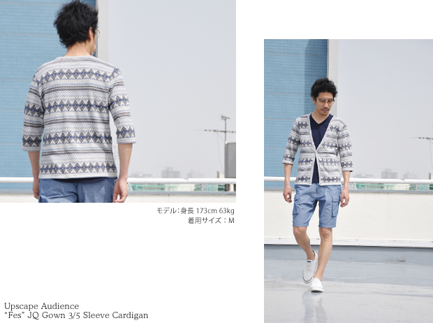 麻混フェスジャガード6分袖ロールアップガウンカーディガン 【MADE IN JAPAN】 / Upscape Audience [AUD2293]