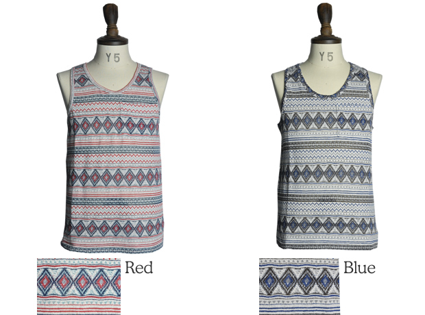 "麻混フェスジャガード"素材を使用したタンクトップ。