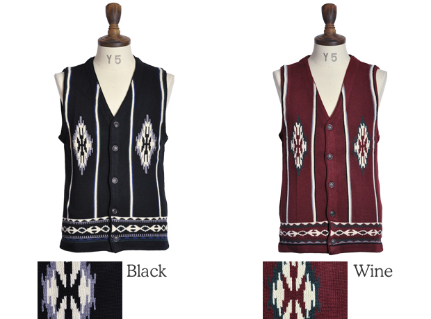 【RE PRICE/価格改定】アクリルコットンオルテガ柄コンチョボタンニットベスト / Audience [AUD2291]