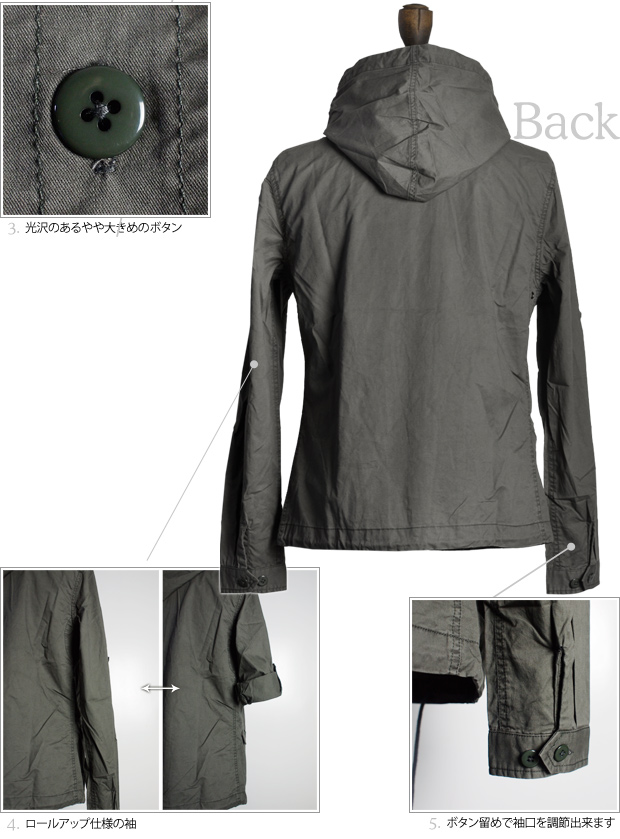 ボタンは光沢のあるやや大きめのボタンを使用。