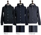 フードのついたカジュアルなスタイルながら、ジップではなくボタンを使用することで、上品な印象をも与えることができます。